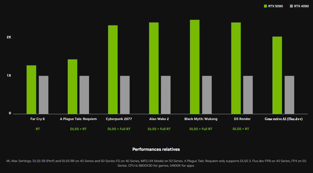 - 3DMark DXR Feature Test: Đạt 120 FPS ở thiết lập ray tracing tối đa, vượt RTX 4090 (~85-90 FPS) ~35%, nhờ số nhân RT cao và DLSS 4.
